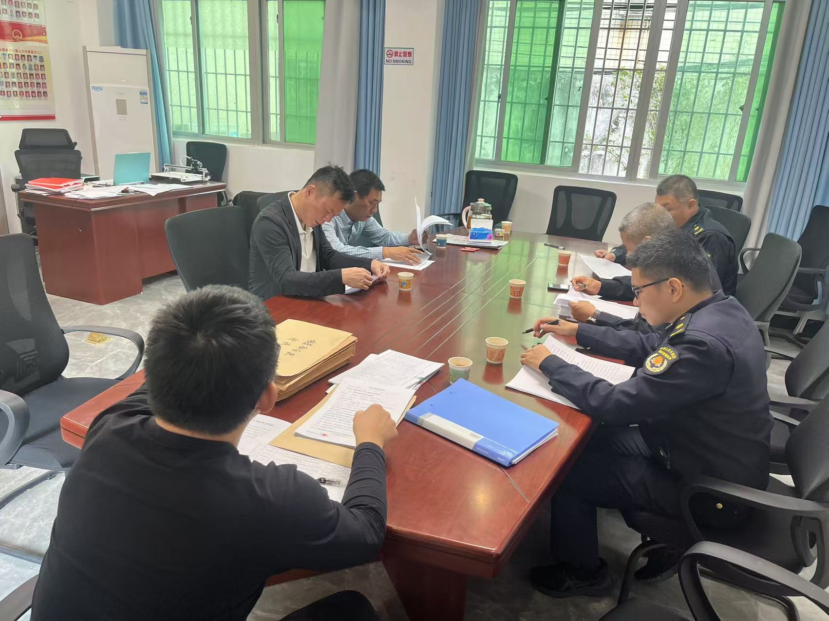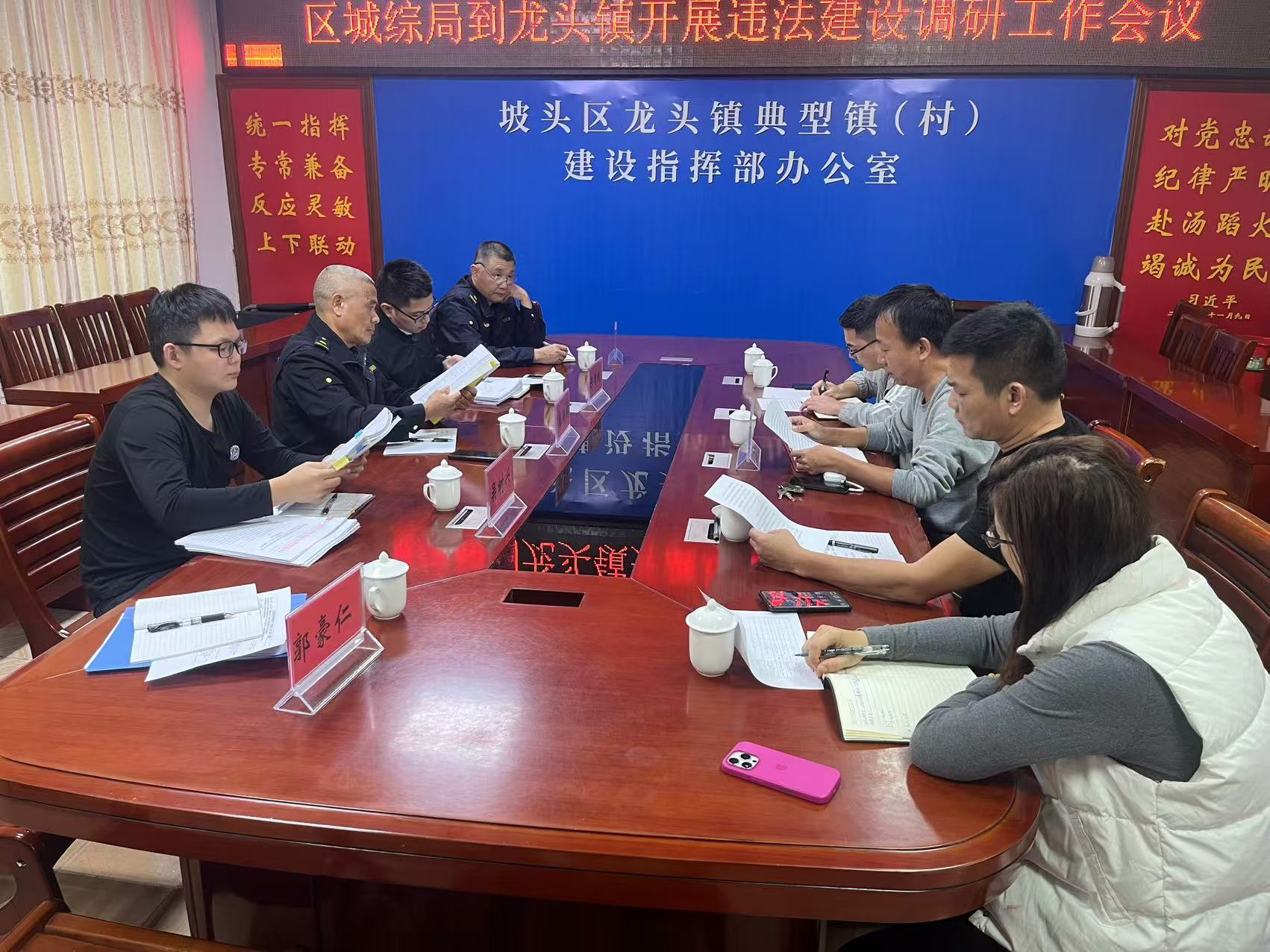 会后,我局领导与各股室干部协同镇街工作人员跟进我局移送相关案件线索的查处进展,我局领导再次向镇街干部强调要对相关线索及时立案查处,按期向我局回复查处进展情况,确保违法建设治理工作顺利开展。
