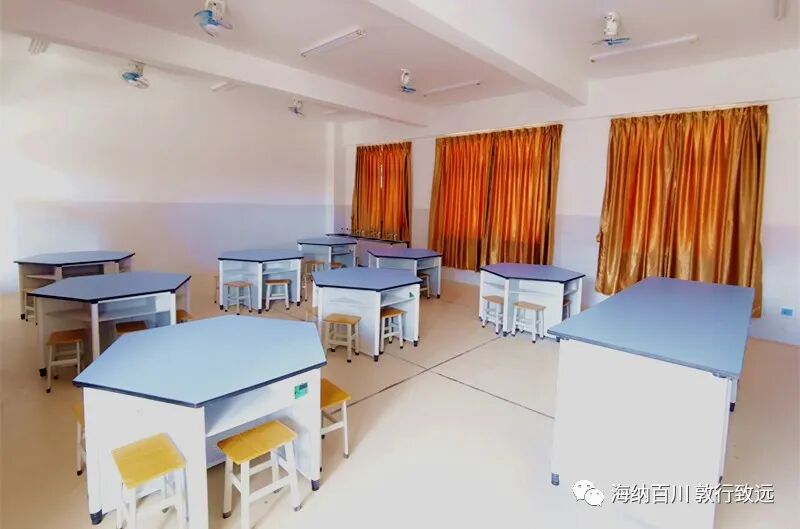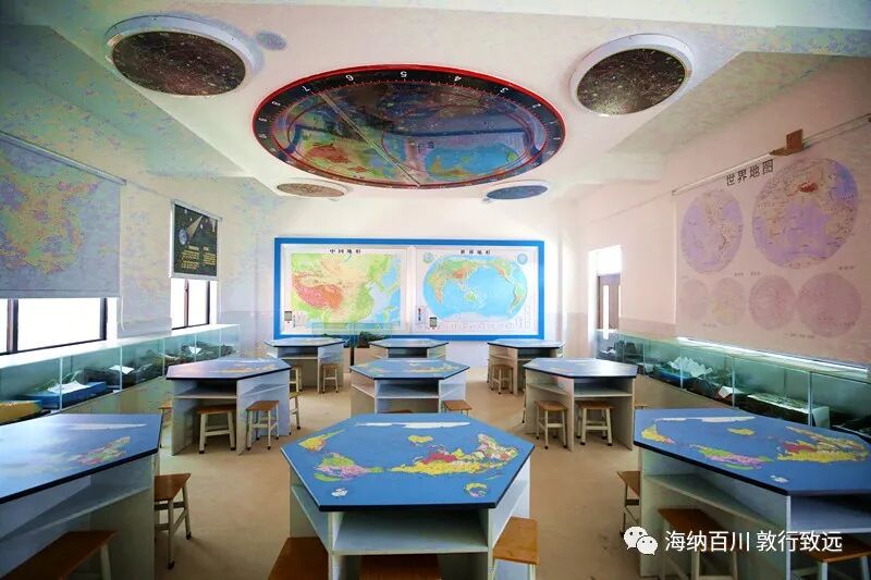 数字化地理专用教室,配有挂图、各类地形地貌模型、星象仪天花板等,为学生创设地理学习情境。