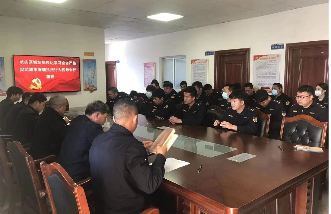 2023年2月24日,湛江市城市管理和综合执法局组织各区、县城综局及分局参加省住建厅严格规范城市管理执法行为视频会议。为贯彻落实会议精神,我局詹举勇副局长按照要求于2023年2月27日下午3时召开专题学习会议,召集执法股、机动中队、高新中队全体执法人员,集中学习省住建厅严格规范城市管理执法行为视频会议精神。