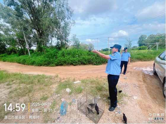 为进一步加强野生动物资源保护,防范和打击非法猎捕、交易和经营候鸟等野生动物违法犯罪活动。根据日常巡查线索摸排,坡头区自然资源局联合官渡镇政府查获两起非法驯养行为,现场收缴八哥、斑鸠共计13只。
