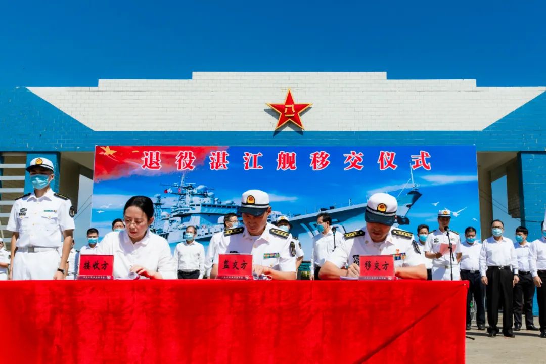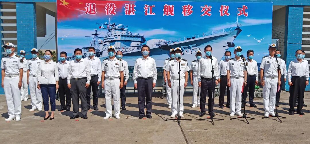 9月4日,退役湛江舰移交仪式在湛江某军港举行。南部战区海军副司令员俞满江少将,市委书记,市长姜建军,市人大常委会党组书记、常务副主任邓振新,市委常委、宣传部部长陈云,副市长参加移交仪式。