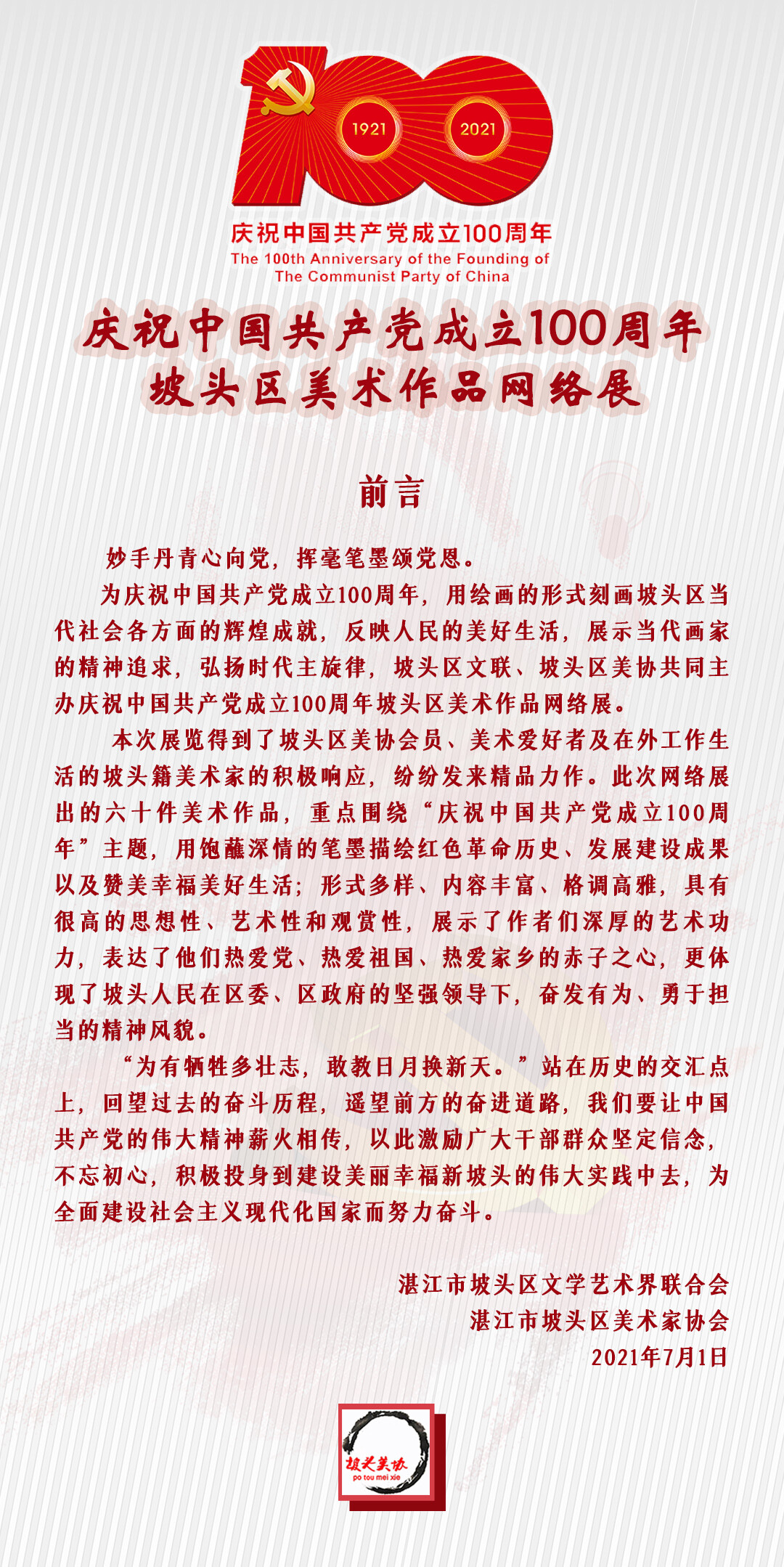 庆祝中国共产党成立100周年坡头区美术作品网络展
