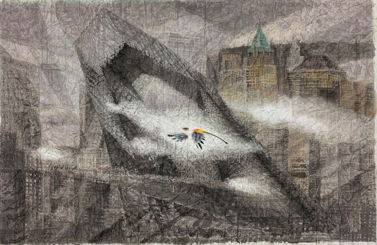 庞国华《飞向未来》国画90X180cm