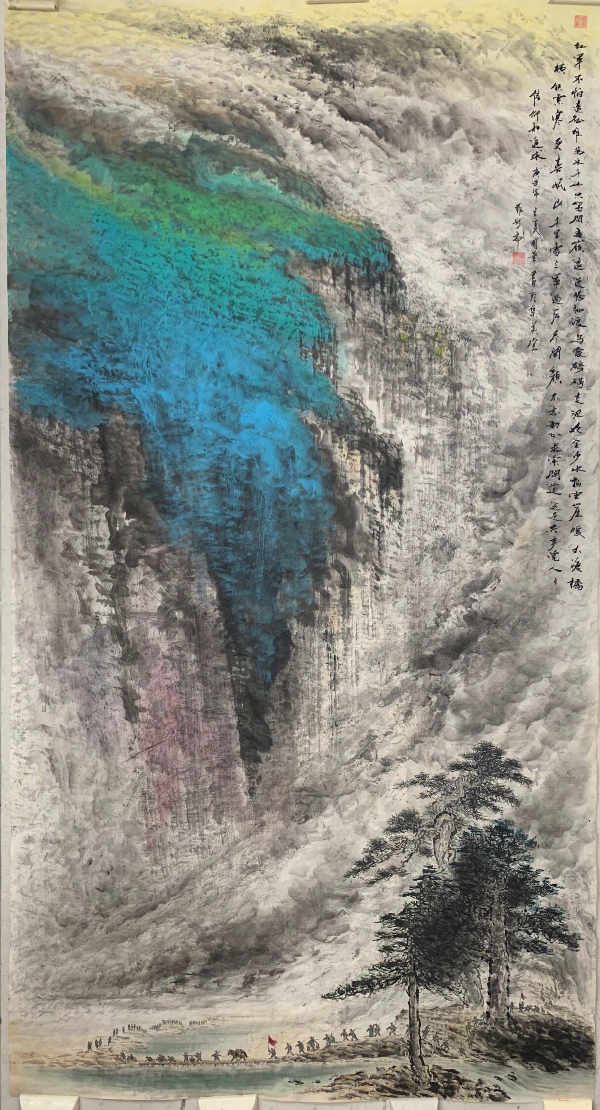 庞国华《红军不怕远征难》国画180X90cm