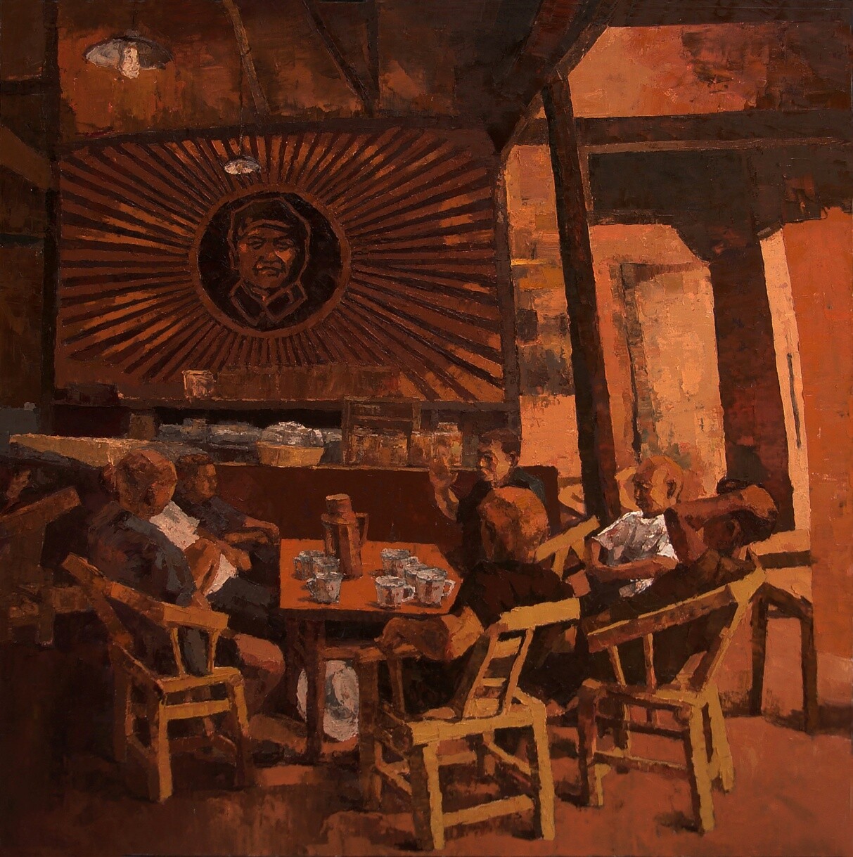 梁明《老党员会议》油画150X145cm