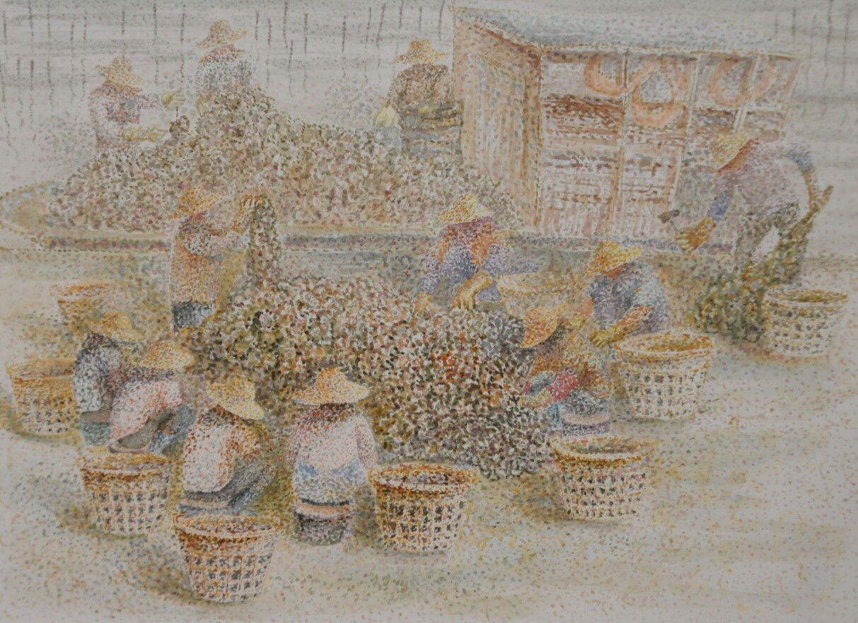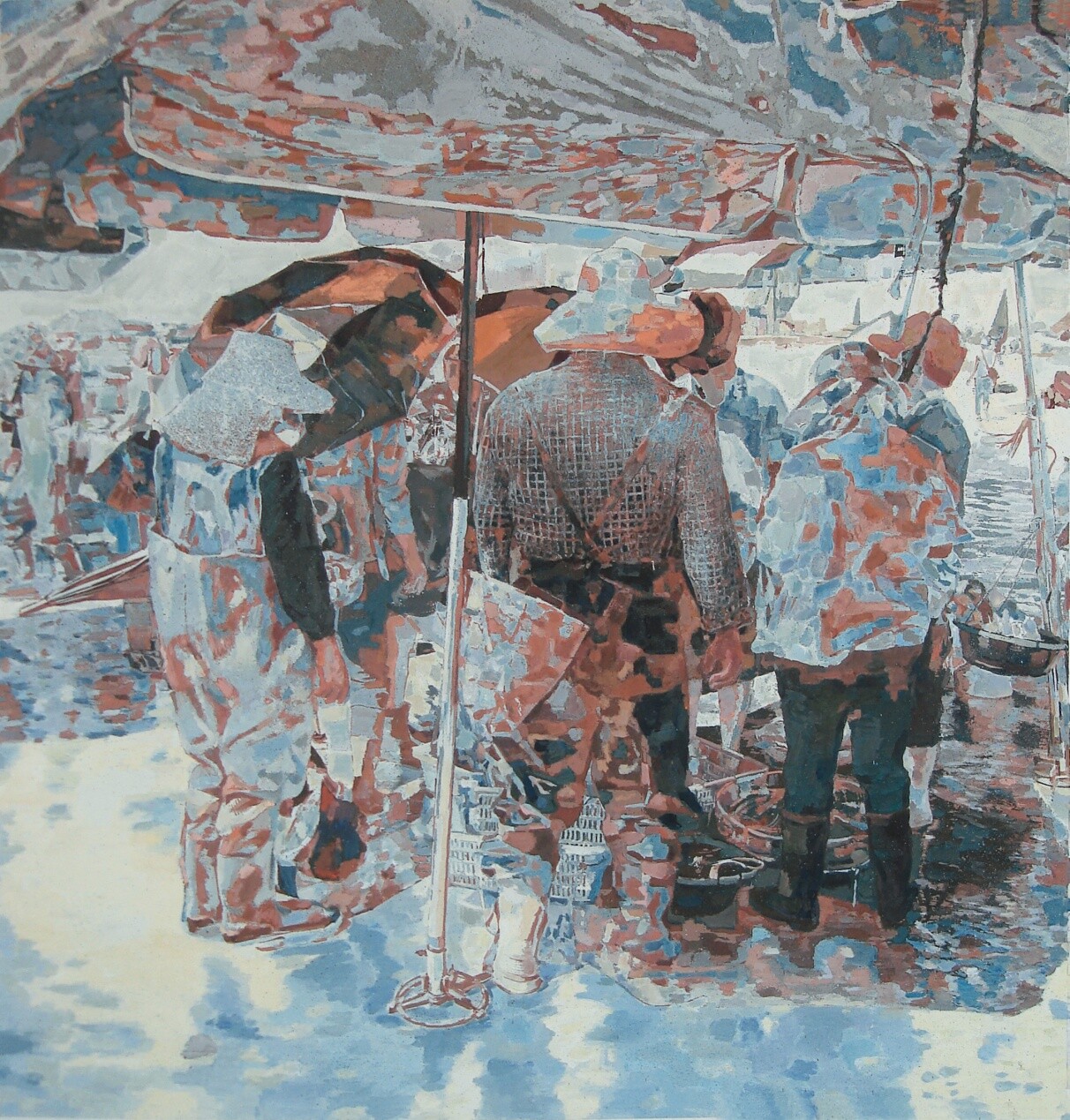梁明《渔市之一》水彩画110X115cm