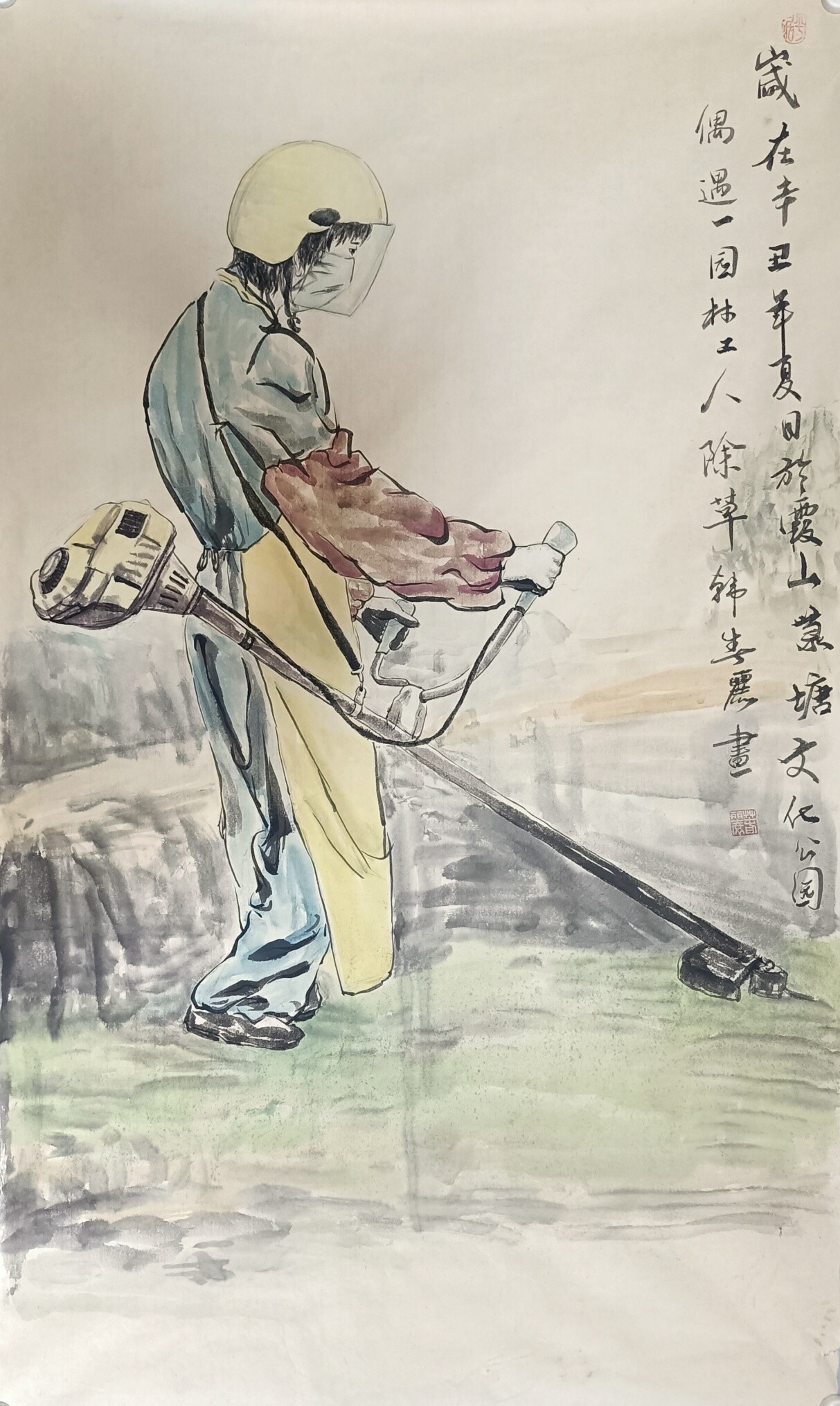 韩春丽《城市美容师》国画120X70cm