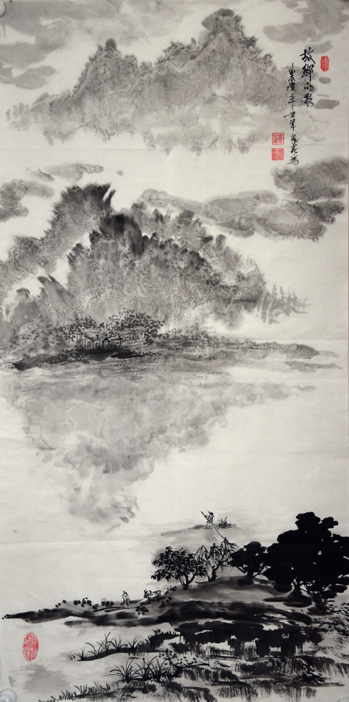 韩家蓉《故乡的歌》国画100X50cm