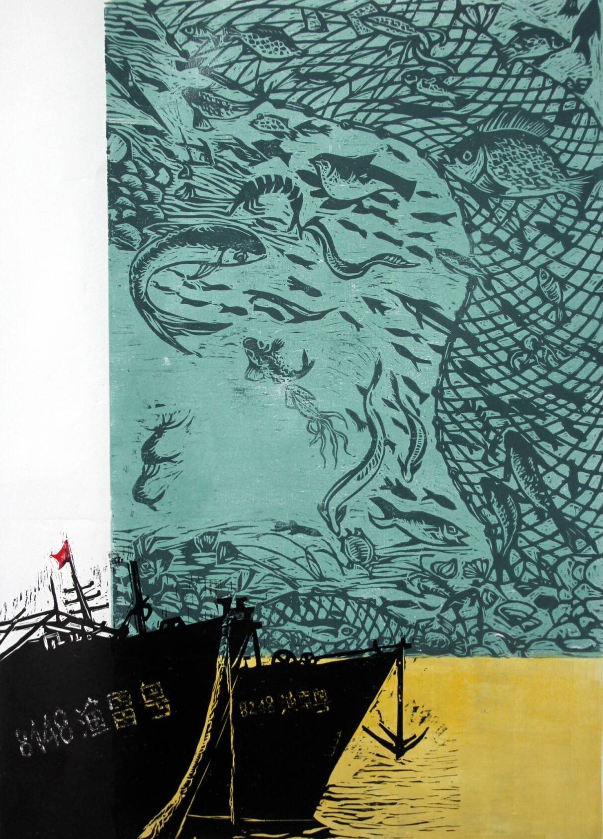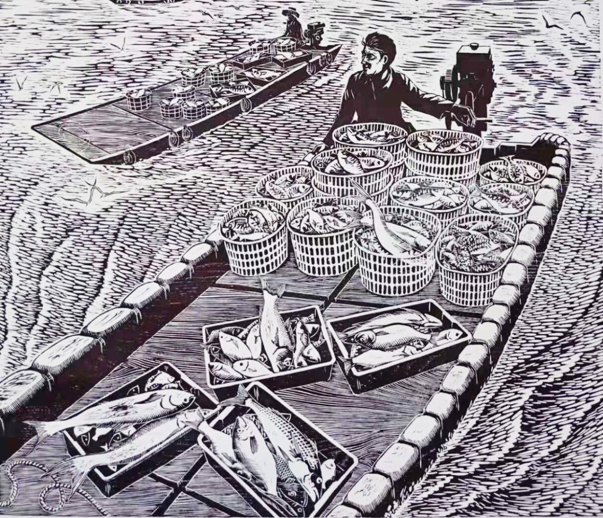 李土燕《满载而归》版画46X89cm