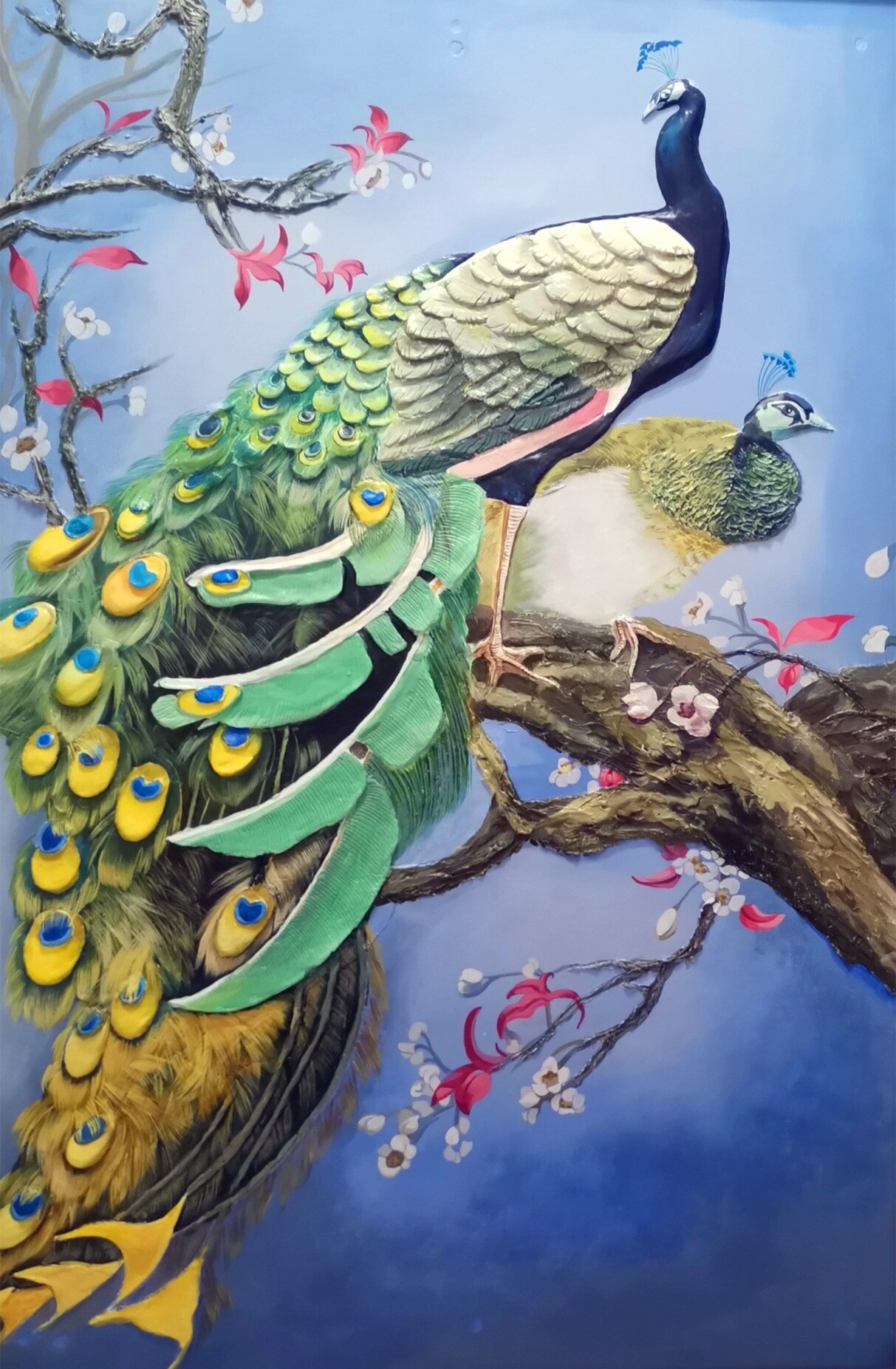 秦贤《孔雀》浮雕100X80cm