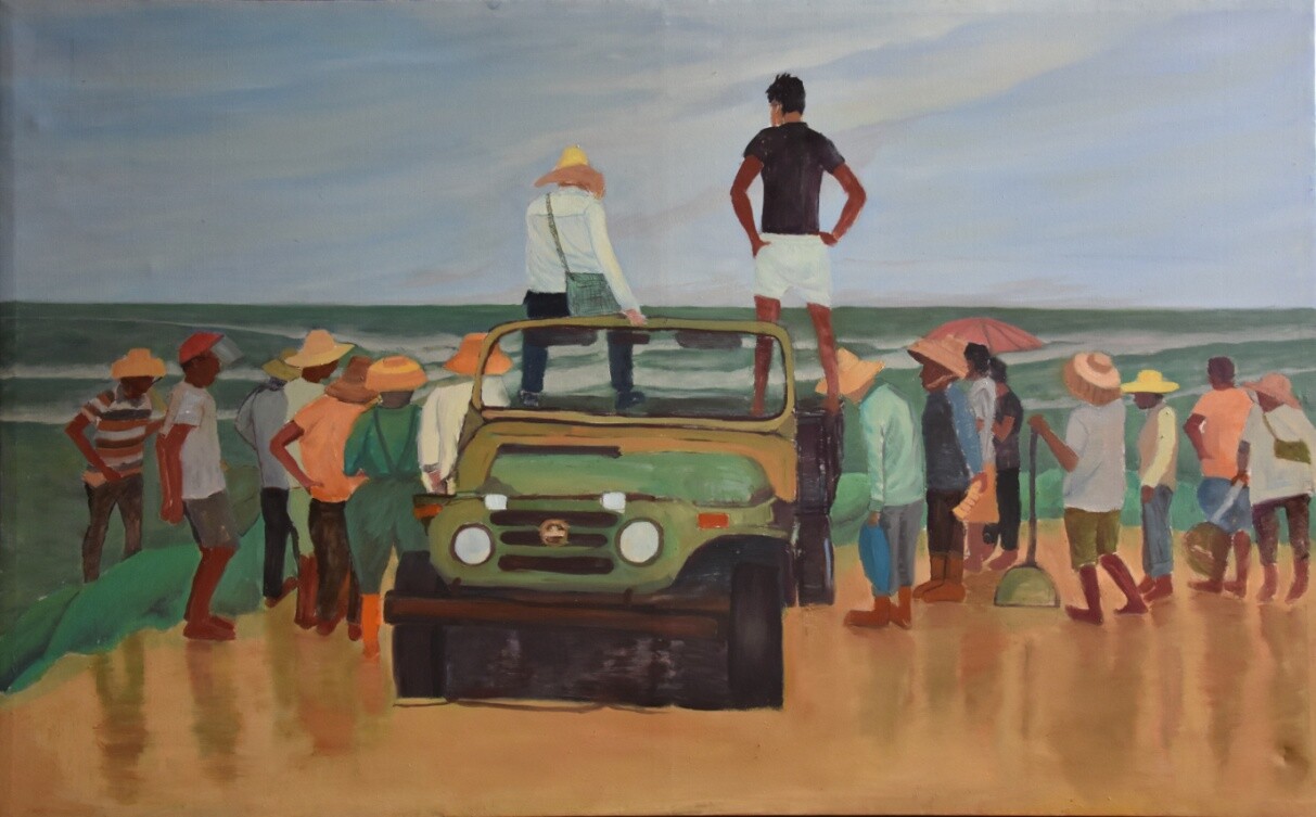 袁马辉《等待》油画100X160cm
