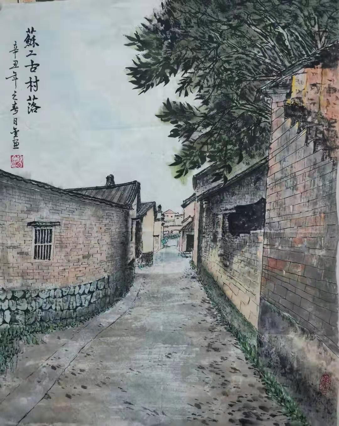 陈日金《苏二古村落》国画62X49cm