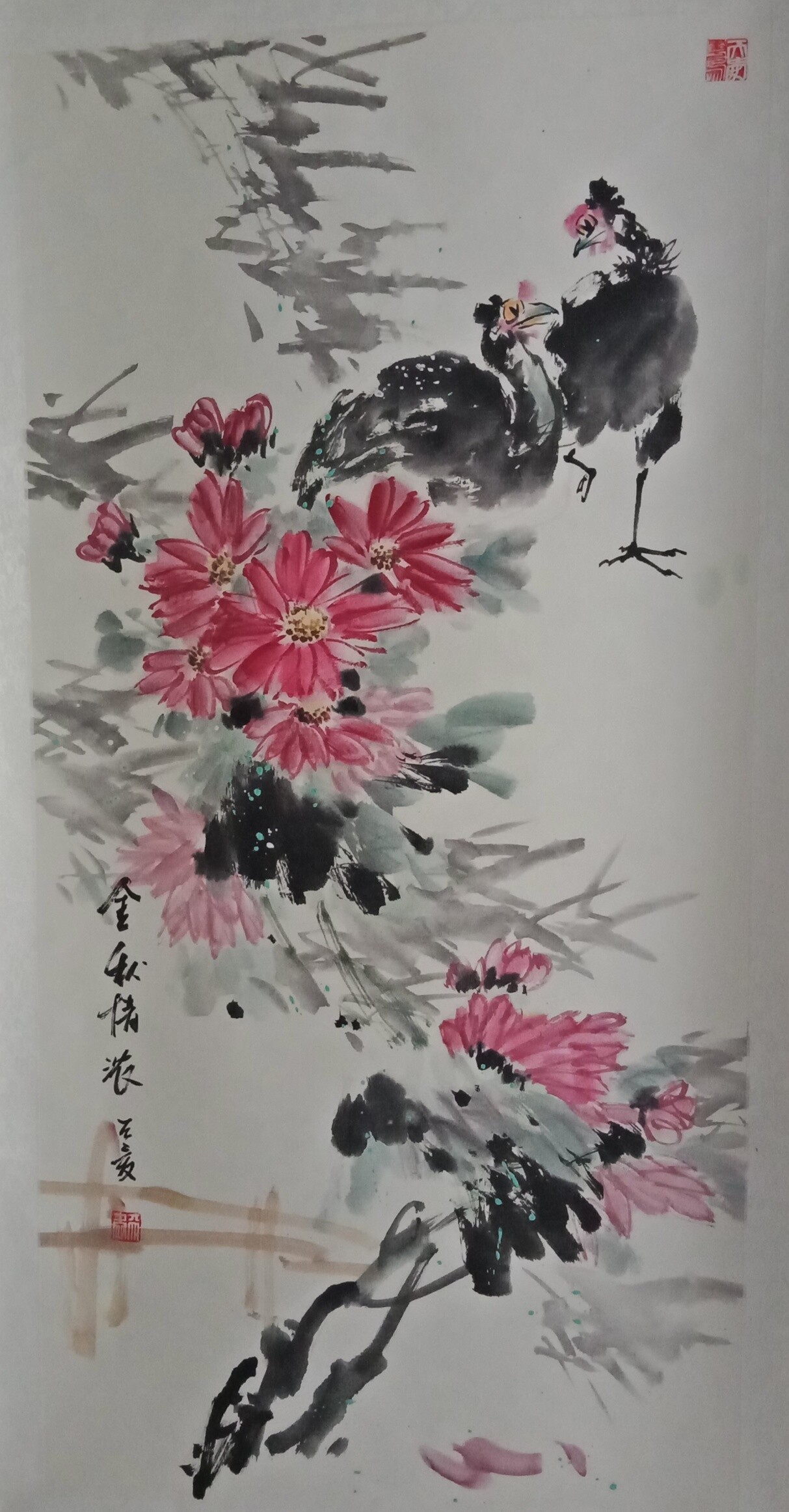 谢萍《金秋情浓》国画138X69cm
