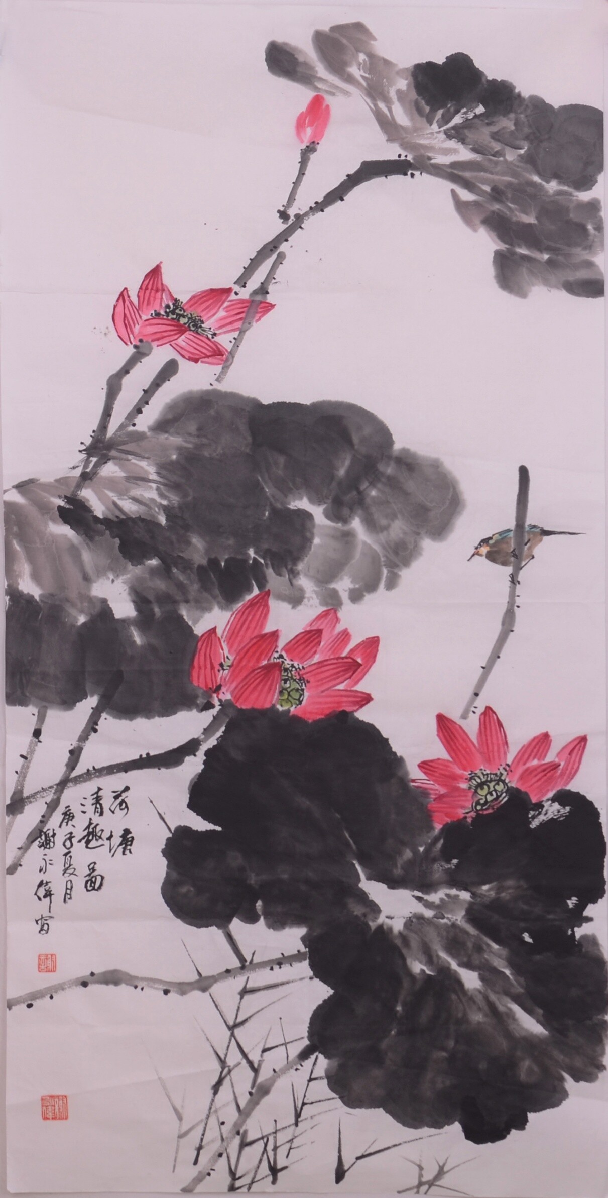 谢永伟《荷塘清气图》国画