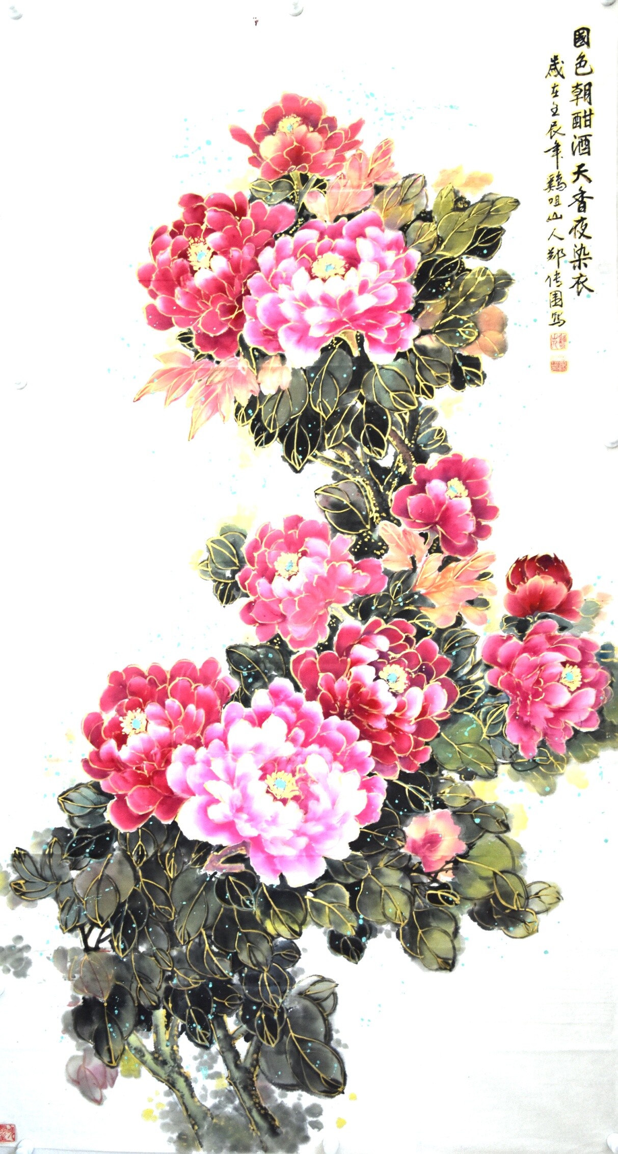 郑传围《牡丹》国画180X90cm