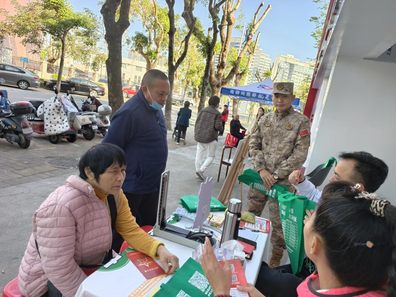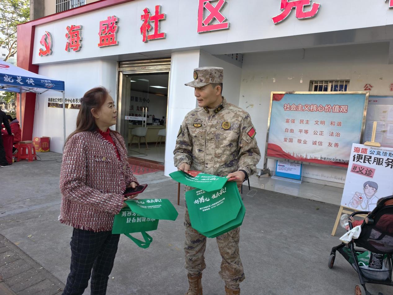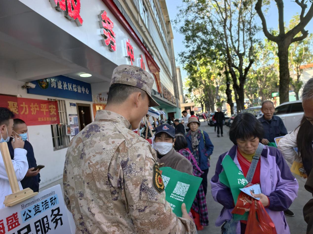 1月9日上午,结合海盛社区开展“我为群众办实事,服务到家门志愿者服务日”主题活动,在党群服务中心门前设立征兵政策宣传专区,面对面为居民答疑解惑,详细讲解习近平强军思想、国防知识、2026年征兵政策等,解读优待政策,以及服役期间津贴等保障,鼓励适龄青年携笔从戎、报效祖国,营造广大群众关心国防、支持国防、建设国防、爱国爱军的浓厚氛围。“大学生当兵,有学费补偿,就医也有补助政策!”吸引群众纷纷上前咨询。