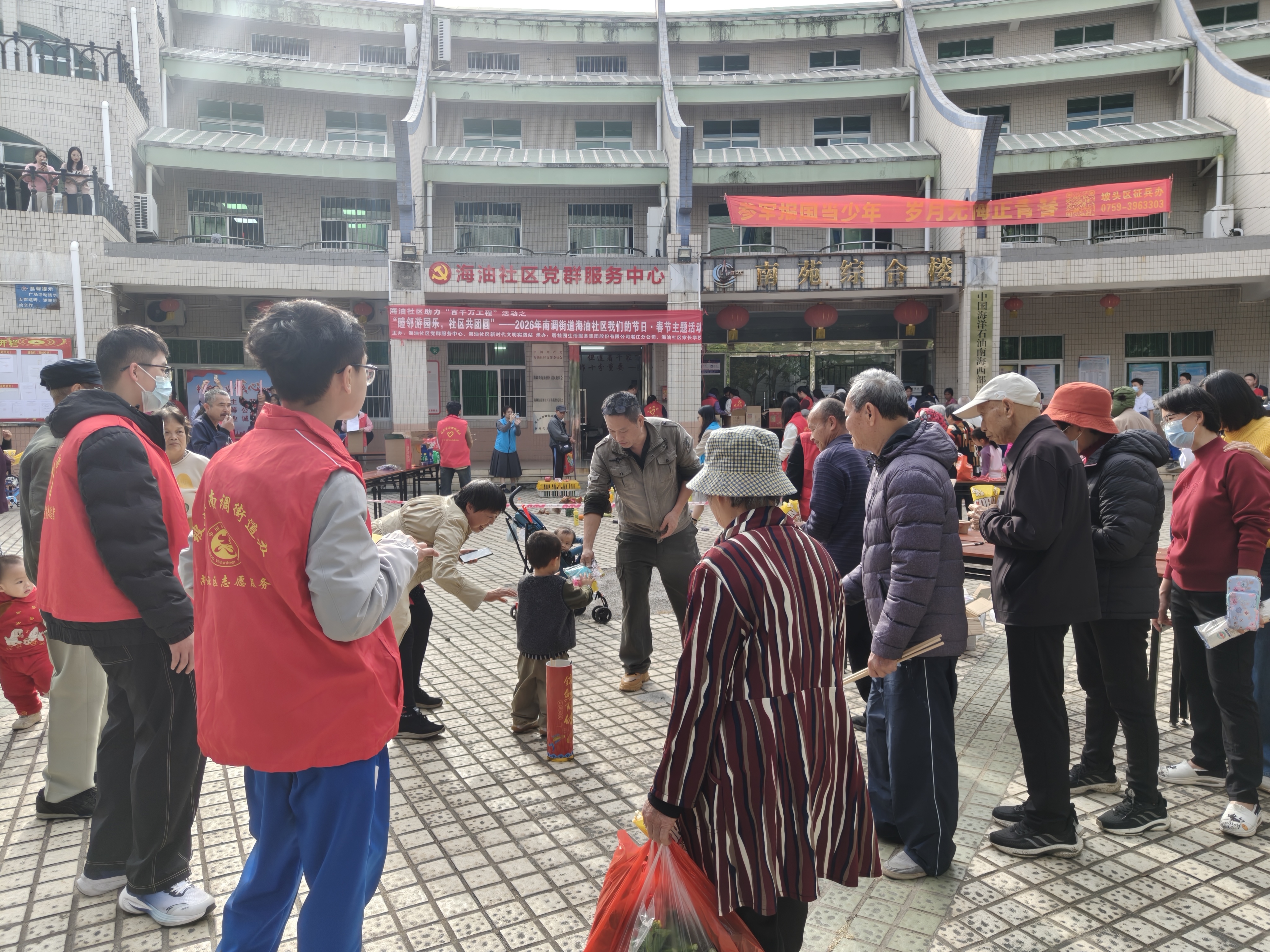 值此丙午马年新春佳节来临之际,为迎接2026年新春佳节,弘扬中华优秀传统文化,营造喜庆祥和的节日氛围,1月30日上午,南调街道新时代文明实践所、海油社区党群服务中心、海油社区新时代文明实践站及碧桂园生活服务集团股份有限公司湛江分公司、海油社区家长学校共同在南油一区南苑综合楼前开展“我们的节日·春节”游园会主题活动,现场80余位群众参与,热闹非凡。