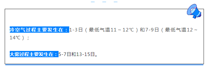 主要有3次弱冷空气过程影响我市