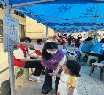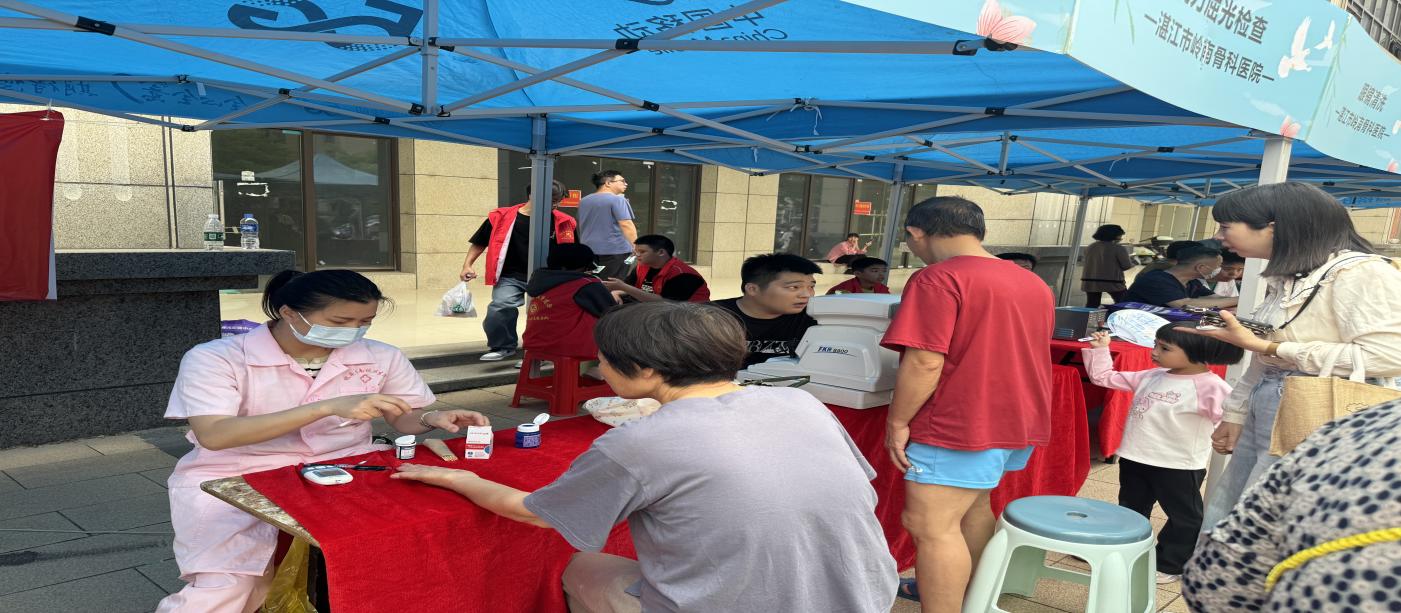 文艺表演落下帷幕,“健康集市”的各项服务正式开启。蓝色的遮阳棚下,各个功能区有序铺开,处处洋溢着温馨而忙碌的气息。在健康义诊区,医护志愿者们身着整洁的工作服,耐心细致地为居民们提供专业服务:有人指着视力表,逐行为孩子们筛查视力,轻声叮嘱用眼习惯;有人手持血糖仪,认真为老人们测量血糖,细致讲解慢性病管理知识;还有人坐在桌前,逐一解答居民们关于日常保健、慢病防护的疑问,用专业能力守护着社区居民的健康防线。志愿者们穿梭在人群中,引导居民有序排队,递上一杯温水,安抚着等候的老人与孩子,让整个义诊流程既高效又充满温度。