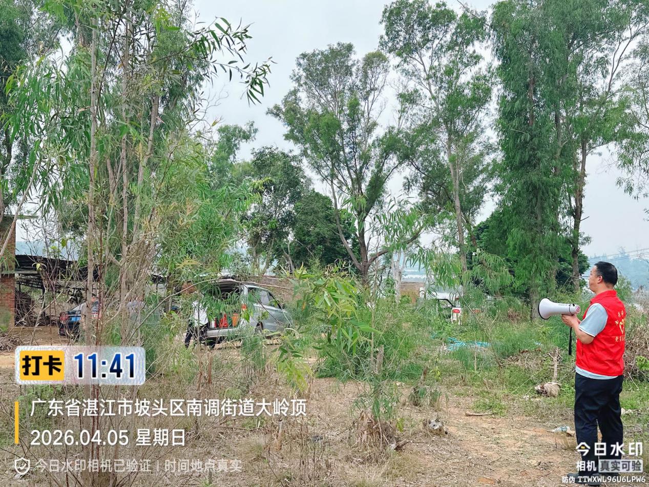 春风寄情,草木含悲。在2026年清明节来临之际,为深入践行移风易俗理念,切实筑牢森林防火安全屏障,坡头区南调街道紧扣“我们的节日·清明节”主题,统筹推进文明祭扫宣传与森林防火工作,以实际行动传承英烈精神、守护绿色家园,让清明节更具文明内涵与安全保障。