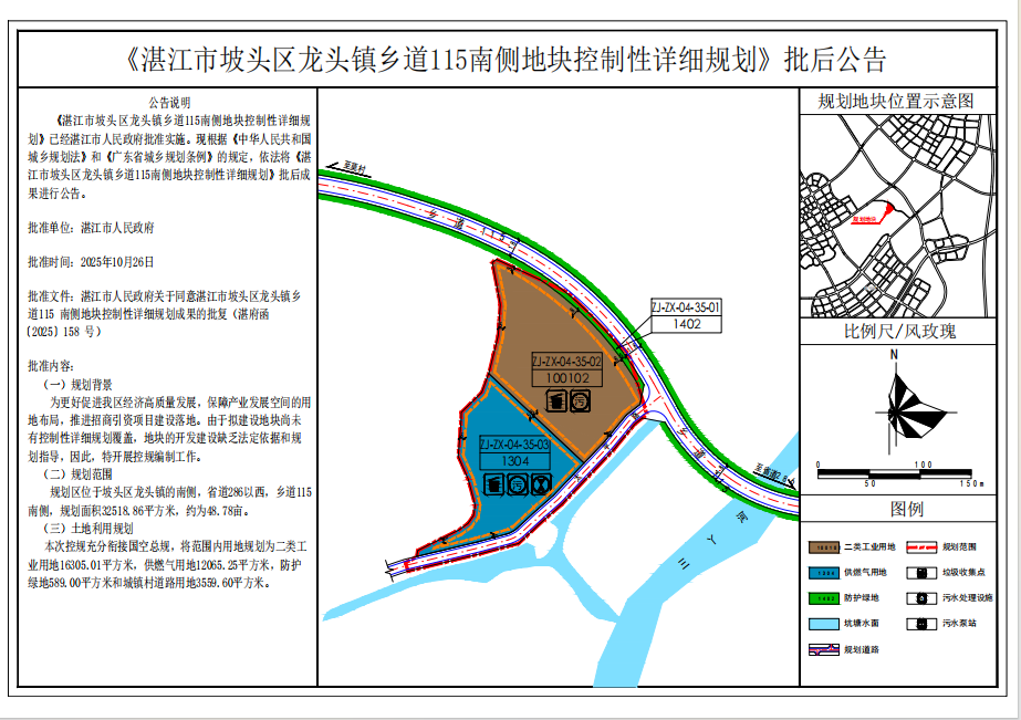 《湛江市坡头区龙头镇乡道115南侧地块控制性详细规划》批后公告