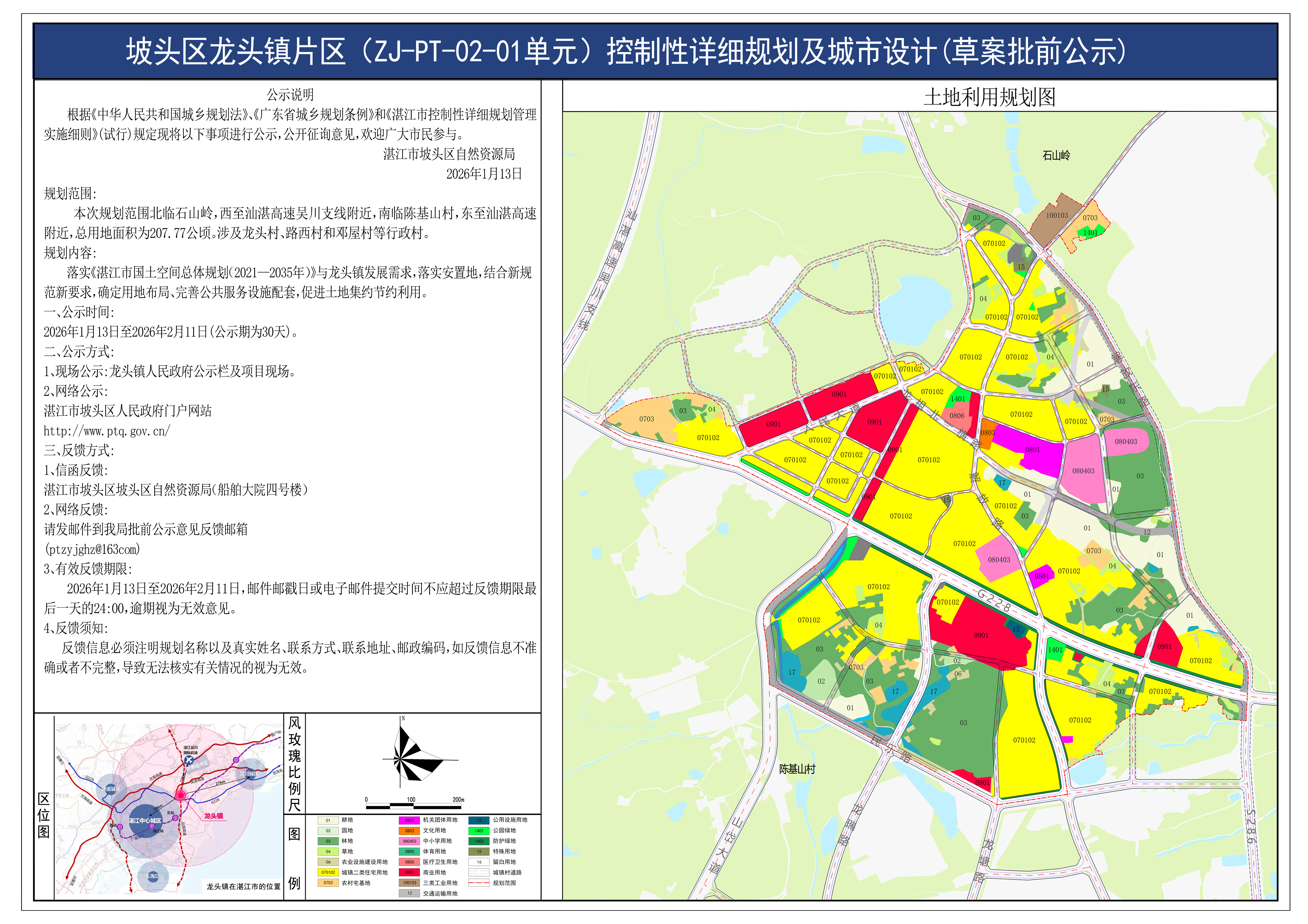 坡头区龙头镇片区(ZJ-PT-02-01单元)控制性详细规划及城市设计草案批前公示