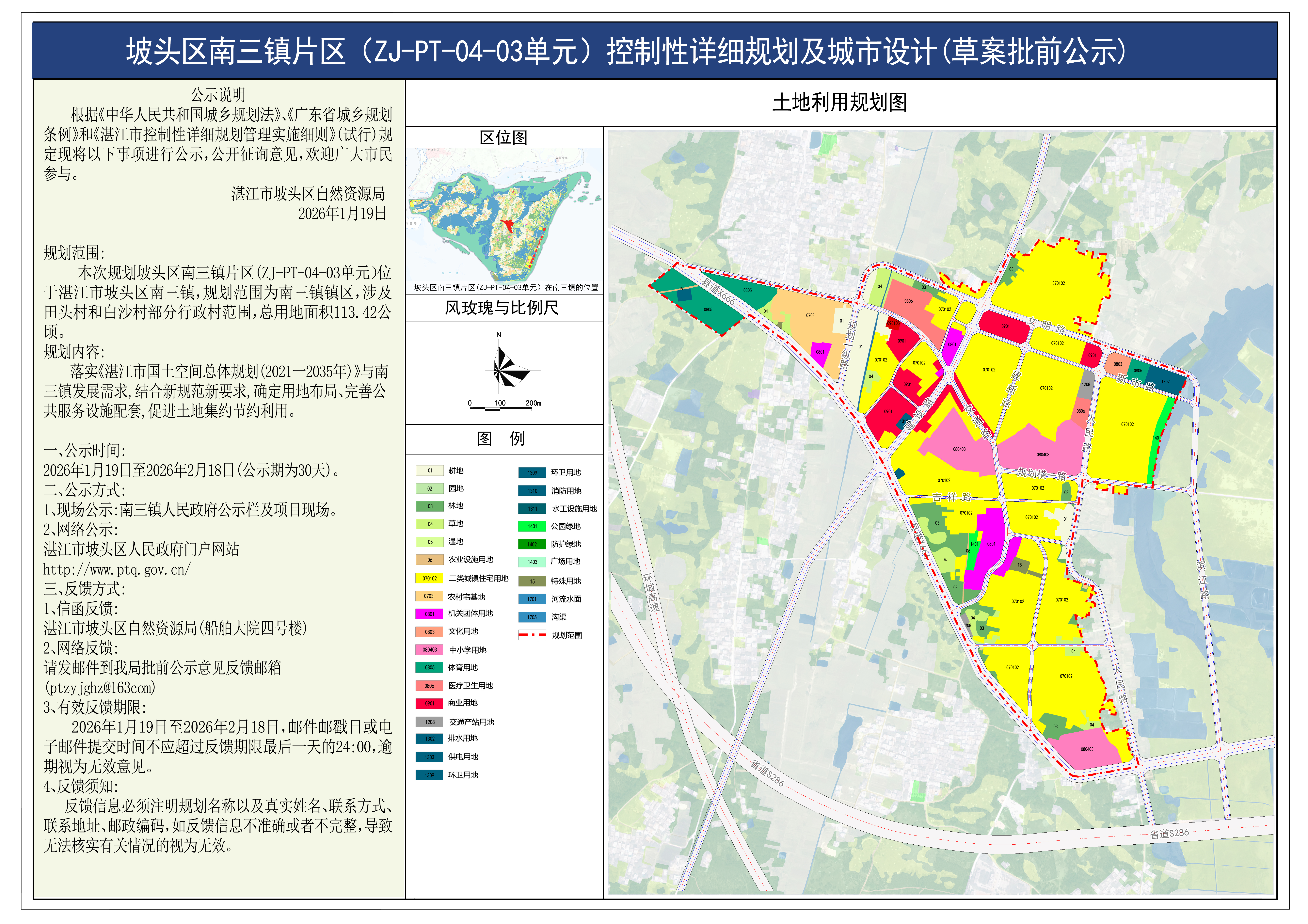 坡头区南三镇片区(ZJ-04-03单元)控制性详细规划及城市设计(草案批前公示)
