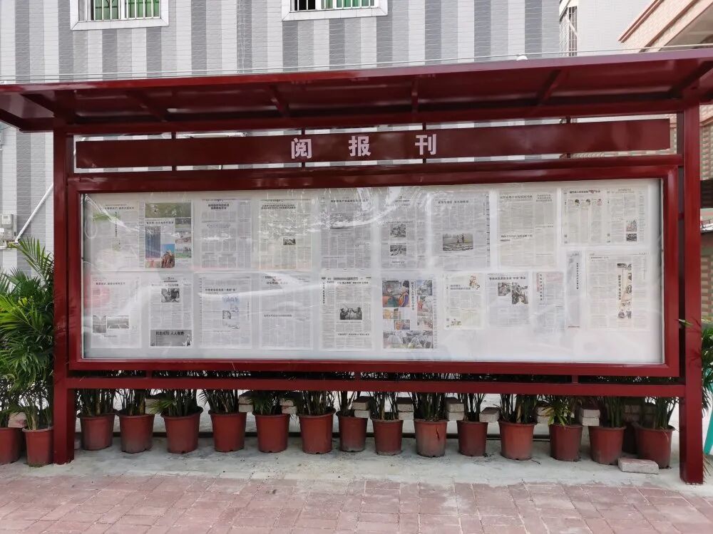 2020年起,坡头区积极推进乡村阅报工程,打通群众阅读“最后一公里”,让党的政策、声音进入农家,目前已在每个村(居)委会挑选2个自然村建设公开阅报栏,共建设140个阅报栏,摘选人民日报、南方日报、湛江日报时政和贴近农村的新闻资讯张贴,每周更换。为了让群众了解到最新资讯,区委宣传部还特意和湛江日报社合作,由报纸投递员定期张贴更新报纸,新报纸准时更换、张贴,让村民一抬头就能看到“党的新理论政策”,既营造了阅读氛围、扩大了党的舆论阵地,也实现了公共文化服务与群众的“零距离”接触,进一步开拓了农民视野、丰富了农民生活、夯实了基层党建。