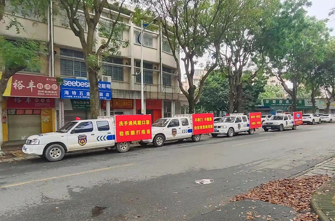 通过LED电子屏、宣传车队、流动喇叭、微信公众号等方式。以多种宣传形式尽可能使疫情防控的宣传尽可能覆盖全城区。每天浩大的宣传车队,结合流动喇叭,在城区不断巡逻宣传,保证宣传覆盖全城区。将防控宣传工作落在实处,使干部职工及群众耳濡目染,努力营造良好的社会舆论环境,取得良好的宣传效果。