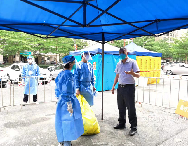 局长吴斌每日深入我局负责的各个核酸检测点,加强对各点位工作的督导,并详细了解重要交通卡口管控、防控措施落实、人员物资调配、现场秩序管理、核酸检测进度等情况。加强与各单位、社会组织的联系,为我们提供充足的物资保障,使我们无所顾忌全力投身防疫一线。