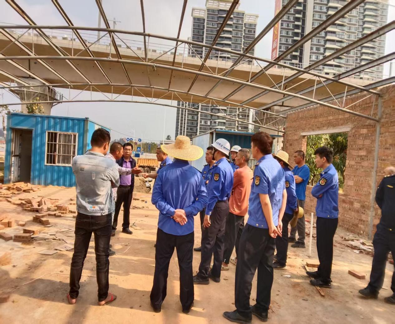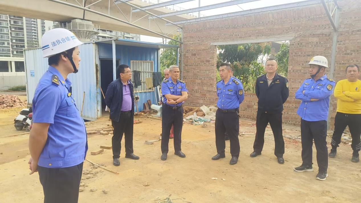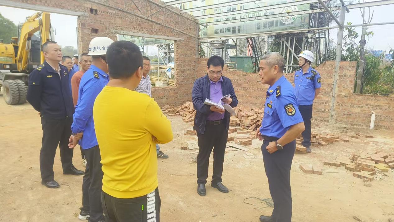 为严格落实《中华人民共和国城乡规划法》《城市市容和环境卫生管理条例》等法律法规,维护城乡建设秩序和生态安全,遏制违法抢建、乱占耕地林地等行为,2025年03月26日上午,坡头区城市管理和综合执法局、坡头区征地办、南调街道办执法队、麻东村委会征地小组、麻东村委会等部门进行联合执法,针对辖区内海川快线采摘园存在的违规搭建问题开展专项整治行动。