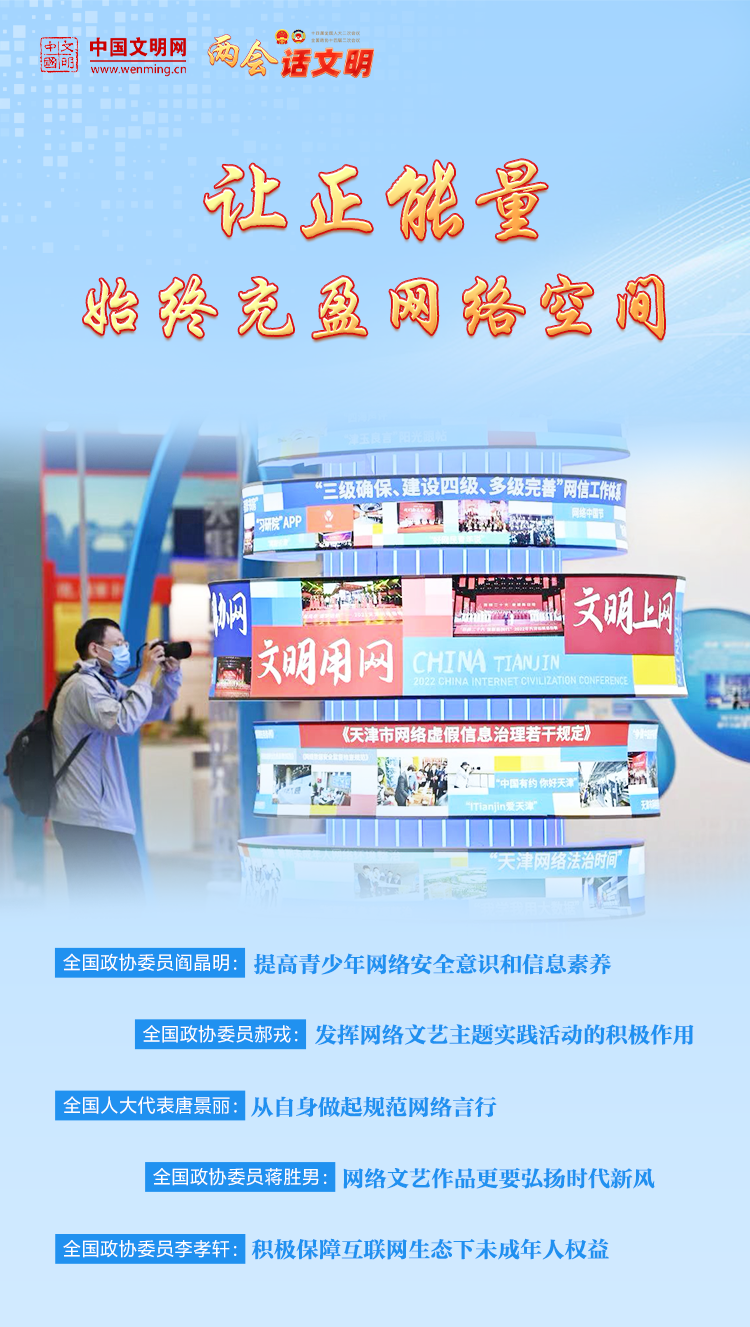 习近平总书记强调,要加强网络空间治理,加强网络内容建设,做强网上正面宣传,培育积极健康、向上向善的网络文化。在今年全国两会上,代表委员就如何加强网络文明建设,让正能量始终充盈网络空间展开热议。