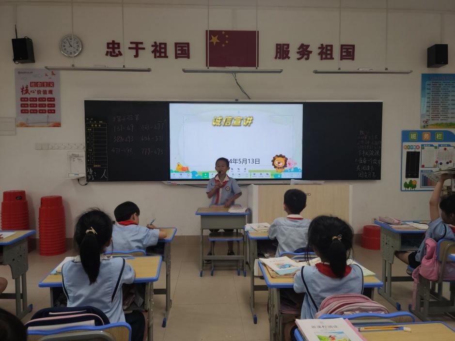 诚信,作为做人的基本原则和学生健康成长的基石,被赋予了极高的重视。各班纷纷召开了“诚信教育”为主题班会课。在班会课上,孩子们积极参与,分享自己熟悉的诚信故事,如《曾子杀猪》中曾子对儿子的诚信教育、《立木为信》中商鞅通过诚信树立政令的权威、《烽火戏诸侯》的警示之痛以及《一诺千金》中季布千金一诺的诚信典范。通过交流分享,同学们深刻理解了“人无信不立”、“言必信,行必果”的道理,对诚信的含义有了更深入的认识和理解。