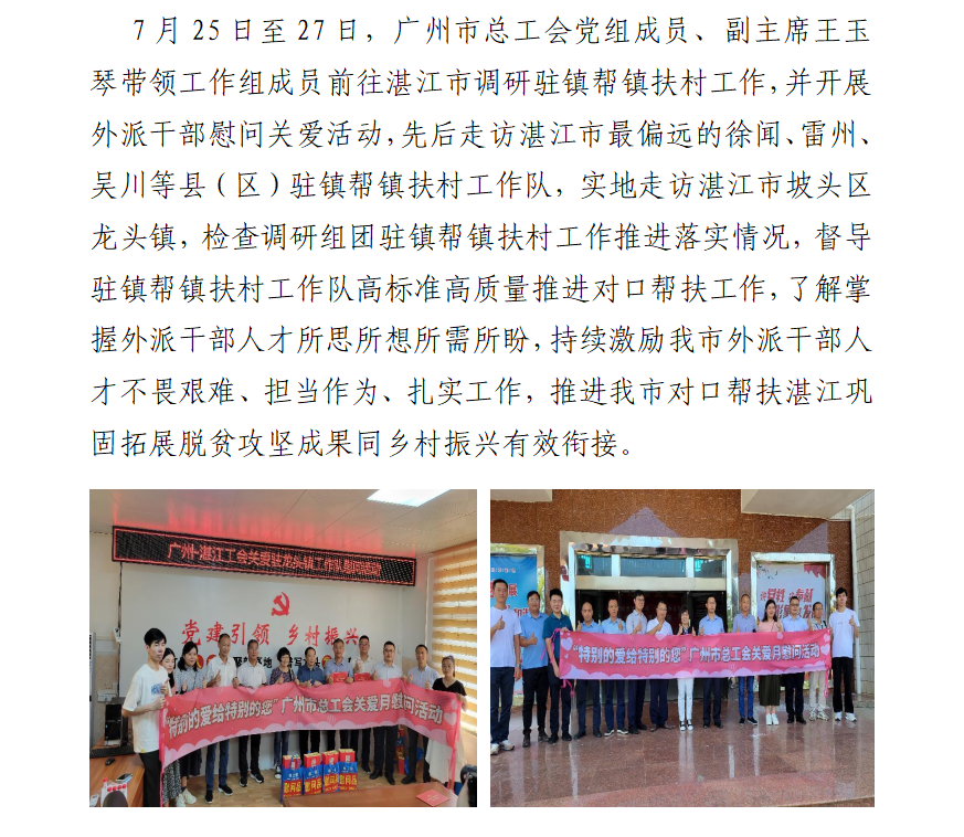 广州市总工会开展帮镇扶村工作调研及外派干部慰问活动