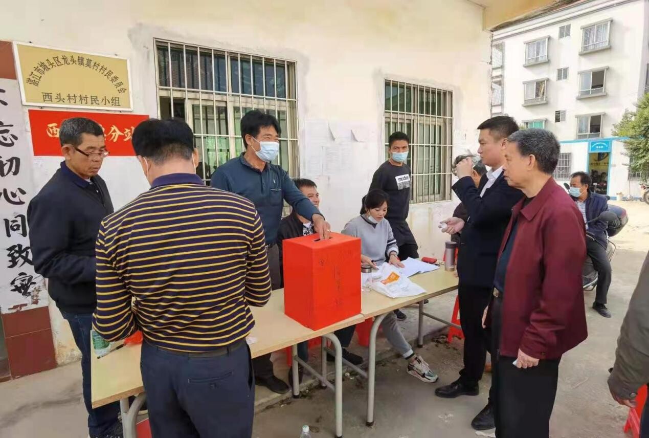 2021年1月27日,坡头区“两委”换届选举观察小组在龙头镇莫村村委会西头村民小组分投站观察投票情况