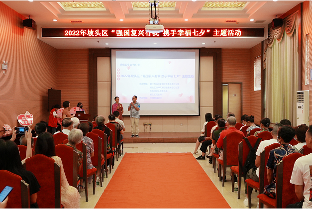 8月4日上午,由湛江市文明办、坡头区文明办、团坡头区委、坡头区民政局主办,文明慈域社工承办的我们的节日•七夕节——2022年坡头区“强国复兴有我 携手幸福七夕”主题活动在南油迎宾馆开展,本次活动共有20对夫妻参与。
