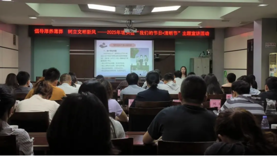 清明节”主题宣讲活动,宣传殡葬改革相关政策法规,倡导党员干部带头参与殡葬改革,弘扬新时代文明新风。各镇(街)、区直及驻区各单位分管领导以及相关工作人员共