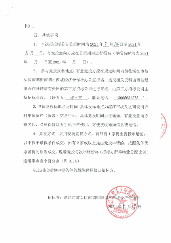 湛江市坡头区南调街南调村西坡经济合作社土地项目合作开发的招投标公告.pdf