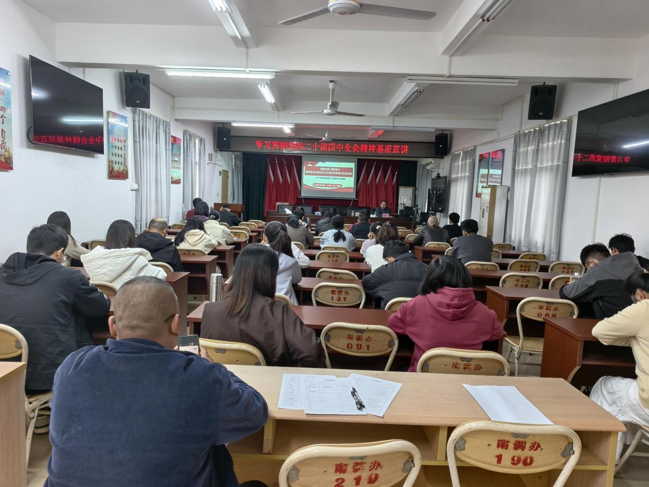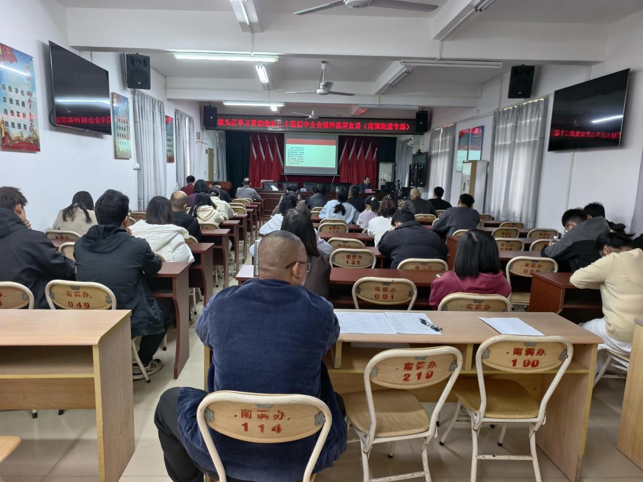 为深入学习宣传贯彻党的二十届四中全会精神,引导南调街道干部、群众统一思想、凝聚共识,切实把学习成效转化为干事创业的实际行动,12月16日下午,南调街道举办坡头区学习贯彻党的二十届四中全会精神基层宣讲(南调街道专场)。街道党员干部、各村(社区)两委干部、居民代表共50余人参加本次活动。