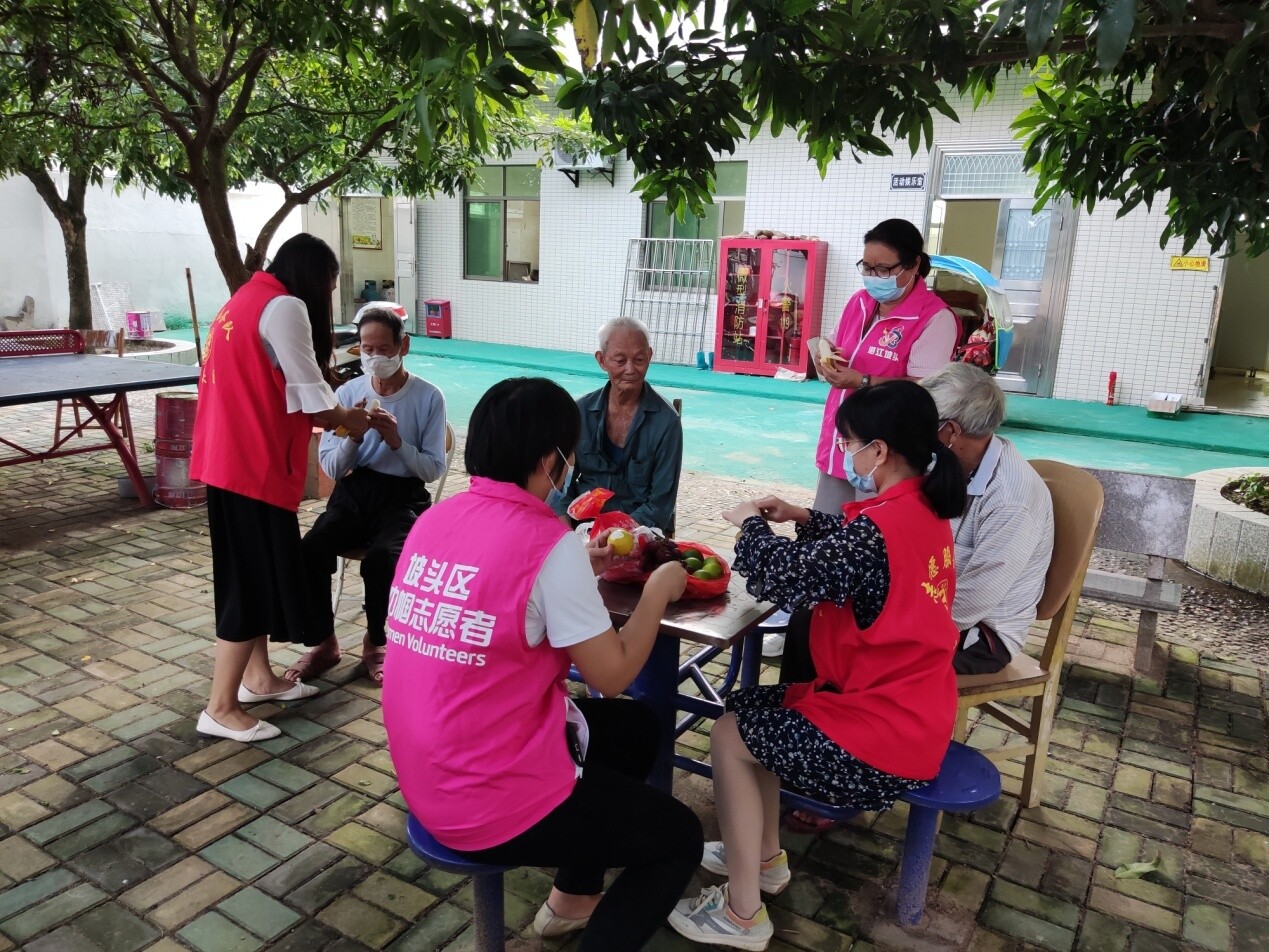 一来到敬老院,志愿者迅速组织起来帮忙打扫院子卫生,打扫完,大家在树荫下围着谈心聊天。镇工作人员为敬老院老人送上水果等慰问品,志愿者们一边为老人剥水果,一边询问他们的生活情况、身体状况等,提醒他们多注意身体,祝福他们身体安康、生活愉快。老人们开心品尝着美味水果,感谢镇委镇政府的关心,讲述在敬老院的幸福舒适生活,脸上满是欣喜和感动。