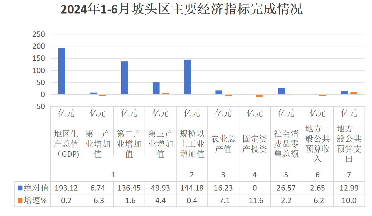 2024年1-6月坡头区主要经济指标完成情况