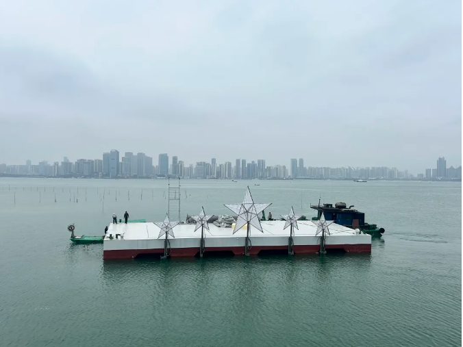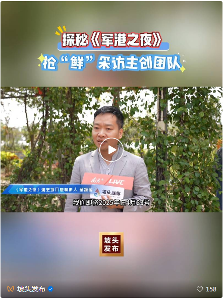 “我们对演员的要求非常严格,第一是演员要具备专业性,第二是演员要热爱舞蹈热爱军港题材。”《军港之夜》舞蹈指导老师李亚迪表示,此次表演对演员的要求较高,“我们是在露天式的海面上表演,表演道具会受到海风的影响更难控制,这就要求我们的演员在保证舞姿不出错的同时还要管理好表演道具。而且海上舞台是浮动性的,舞台会旋转、倾斜,对演员的膝盖和腰背能力以及平衡力提出了更高要求,演员要打起十分精神,把一个动作练上上百遍。” 《军港之夜》演艺项⽬舞蹈总监 (2025年央视春晚舞蹈总监)⻩云松介绍 团队经过多次的推敲才确定好剧本的最终内容 现在还要根据现场情况 对剧本进行微调 比如演员的台词数量和时长 谈及《军港之夜》的军事文化和海洋元素,⻩云松表示,“《军港之夜》是国内首个海上军舰演艺秀,该作品落地湛江、扎根退役湛江舰,是实景和海洋的结合,充分体现出强国爱军的演艺题材,这种题材是非常难得的。”这部作品除了题材鲜明,演员的表演方式也别具一格。“我们的舞台有三个大型翻板,它可以旋转,也可以左右倾斜,前后倾斜。在这个舞台就感觉像在军舰的甲板上一样乘风破浪,演员们能够展现出海上军人的气场,给观众带来一种前所未有的震撼。它跟陆地截然不同,陆地上是我们人在动,我们现在在海上,是海在动,板子在动,机械在动,人也在动。” 2024年春节 由湛江籍中央广播电视总台导演杨东升执导的 《军港之夜》3Dmapping秀——《我的名字叫湛江》 是全国首创的军事主题海上实景特效演艺 吸引了大批市民前来观看 让众多市民至今记忆犹新 今年4月23日 国内首部海上军舰演艺秀《军港之夜》 将呈现出“战舰为幕、星辰作景”的海上艺术奇观 给观众带来前所未有的观看体验 湛江坡头 期待与你相见