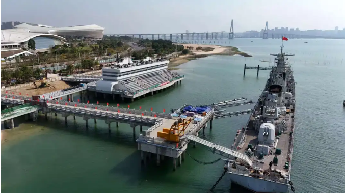 《军港之夜》演艺项目总制作人梁振运表示,2024年推出的海上军舰奇幻灯光秀《我的名字叫湛江》是序幕,而今年4月23号推出的国内首个海上军舰演艺秀《军港之夜》是一台真正的“大秀”。“军民融合、军地融合已经成为湛江城市性格的另一种体现。我们定在中国海军节开幕,是想通过这场军舰演艺秀来致敬湛江这座军港之城。我们将尽最大努力在演出时体现出对军人的由衷钦佩以及对军港的依恋热爱。”