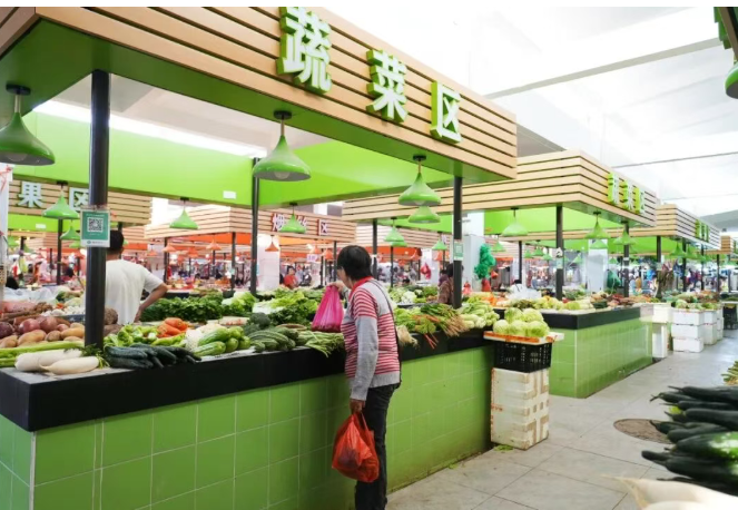 走进如今的田头市场,映入眼帘的是193个整齐划一干净明亮的摊位。曾经的设施陈旧、布局凌乱的老旧市场,完成了从“面子”到“里子”的蝶变,不仅提升了市场的“颜值”,更优化了排水、照明等基础措施,市场整体布局更加整洁有序,从根本上改善了经营和购物环境。