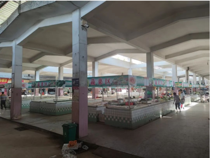 去年12月,龙头镇农贸市场完成升级改造,市场蔬菜区、水果区、杂货区、服装区等功能区域分类清晰,改造完成的部分环境干净整洁、过道明亮宽敞。