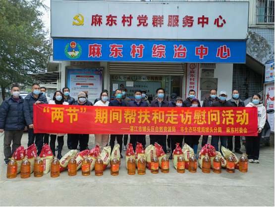 1月17日,在海东新区党工委委员、管委会副主任李开河同志率队领导下,坡头区自然资源局联合市生态环境局坡头分局到南调街道麻东村委会开展“两节”期间帮扶和走访慰问活动,我局钟日南局长、梁素荣主任及相关部门负责同志、生态环境局领导班子成员、南调街道办主任庞伟琦和麻东村委会干部参加了慰问活动,为困难群众和老党员发放米油等物资,并为他们送去党的关怀与新春的祝福。