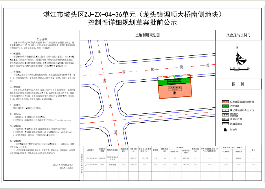 湛江市坡头区zj-zx-04-36单元(龙头镇调顺大桥南侧地块)控制性详细规划草案批前公示
